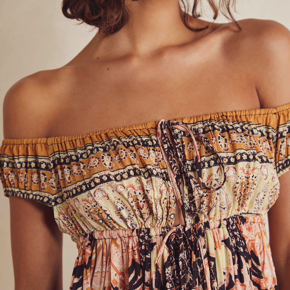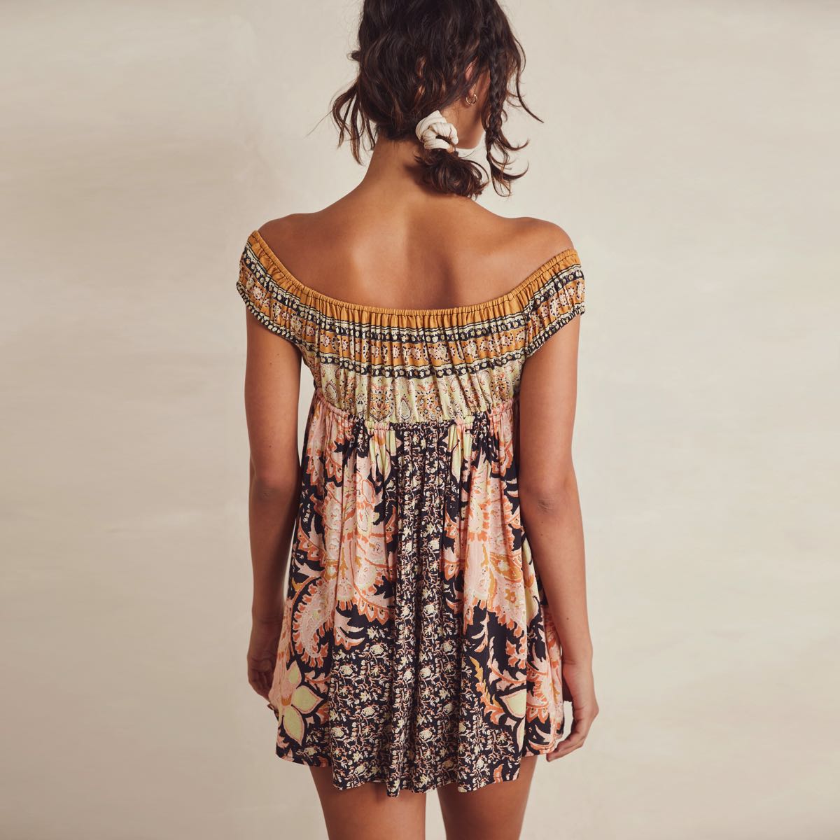- Effortlessly ethereal, this stunning mini slip features a plunging, off-the-shoulder neckline with tie straps, empire waistline and vintage-inspired mixed floral print for added dimension. We love to pair this slip with bike shorts or leggings. From Free People’s Intimately collection- Free People’s softest intimates and best-ever base layers. Intimately is an in-house label.